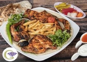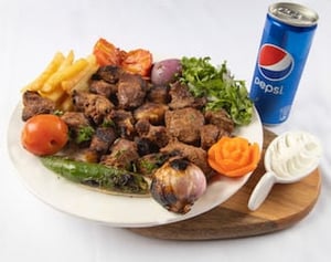 3 tawook + 3 tikka + 5 meat kebab + 5 chicken kebab + 1/2 chicken on charcoal + arayes bowl + hummus bowl + salad bowl + family Pepsi + garlic + spicy bread