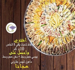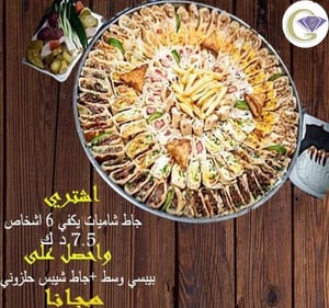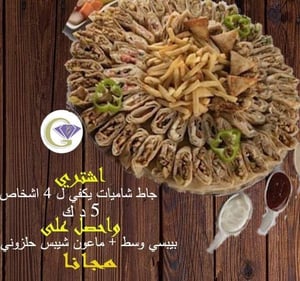 Buy a bowl of Shamiat for 8 people to get a medium Pepsi + medium 7 up + potato bowl