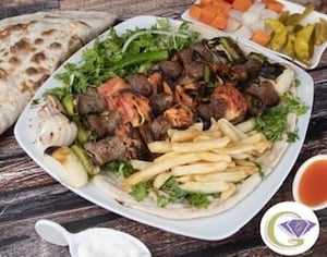 3 tawook + 4 meat kebab + 4 chicken kebab + arayes with delicious garlic and spicy bread