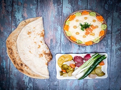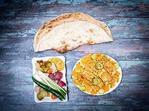 Bread + chicken 2 broth bowls + 2 lentil bowls + maabooch + spicy bread