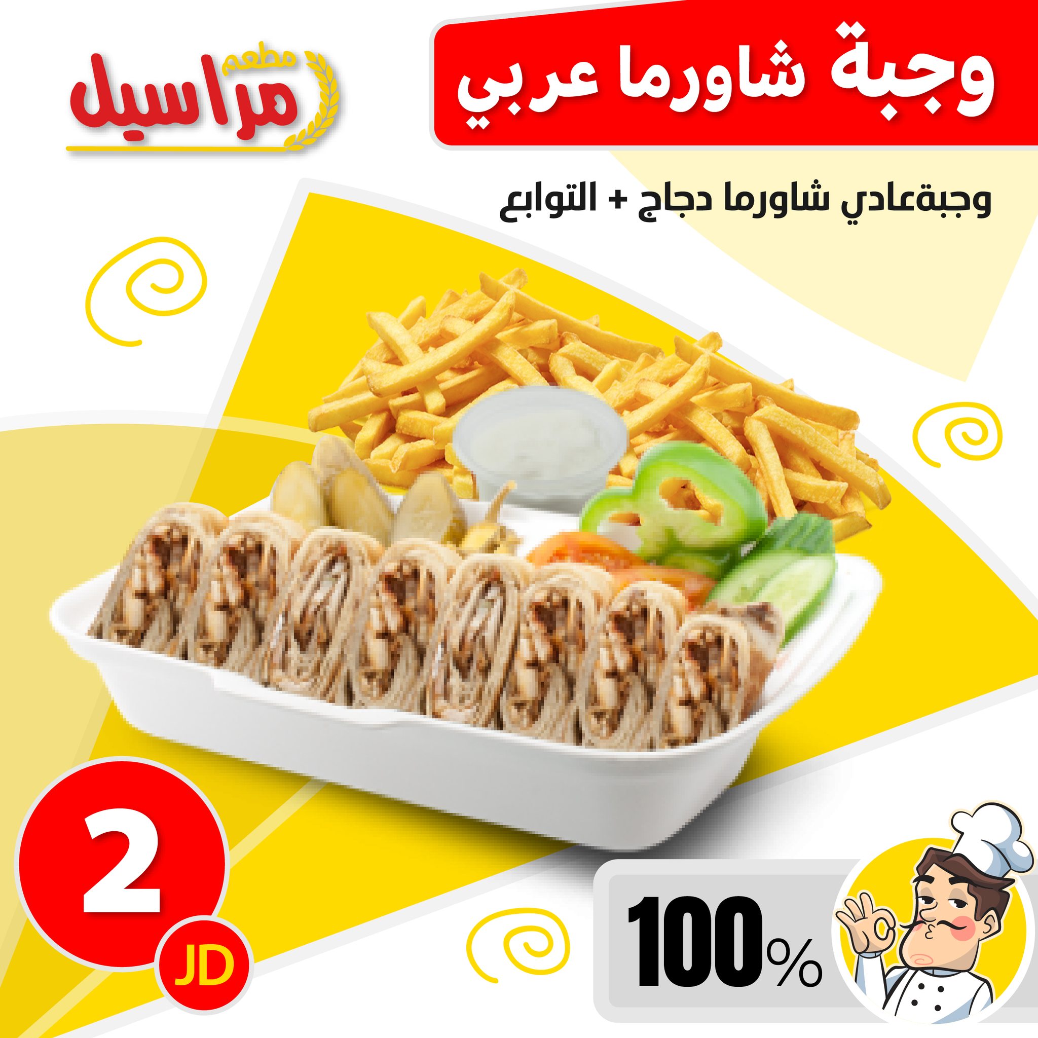 وجة عادي شورما الدجاج + التوابع : فقط ب 2 دينار