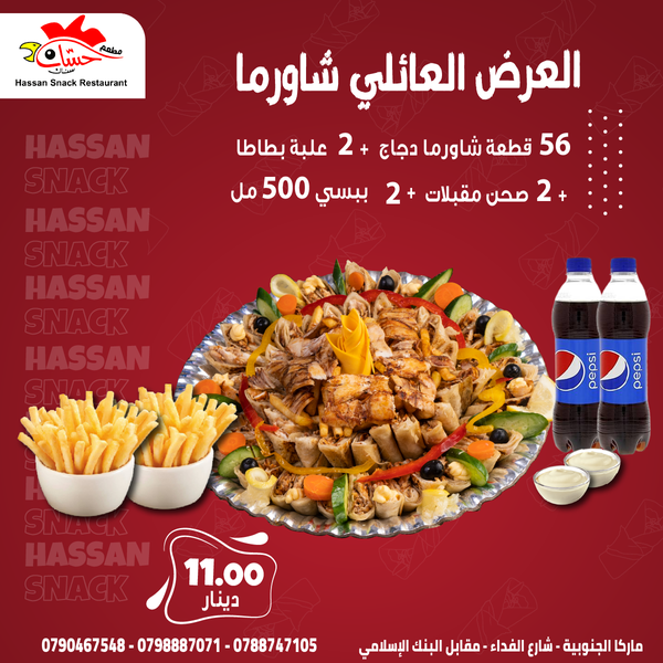 العرض العائلي الشورما المكون من 56 قطعة شورما و التوابع فقط ب 11 دينار